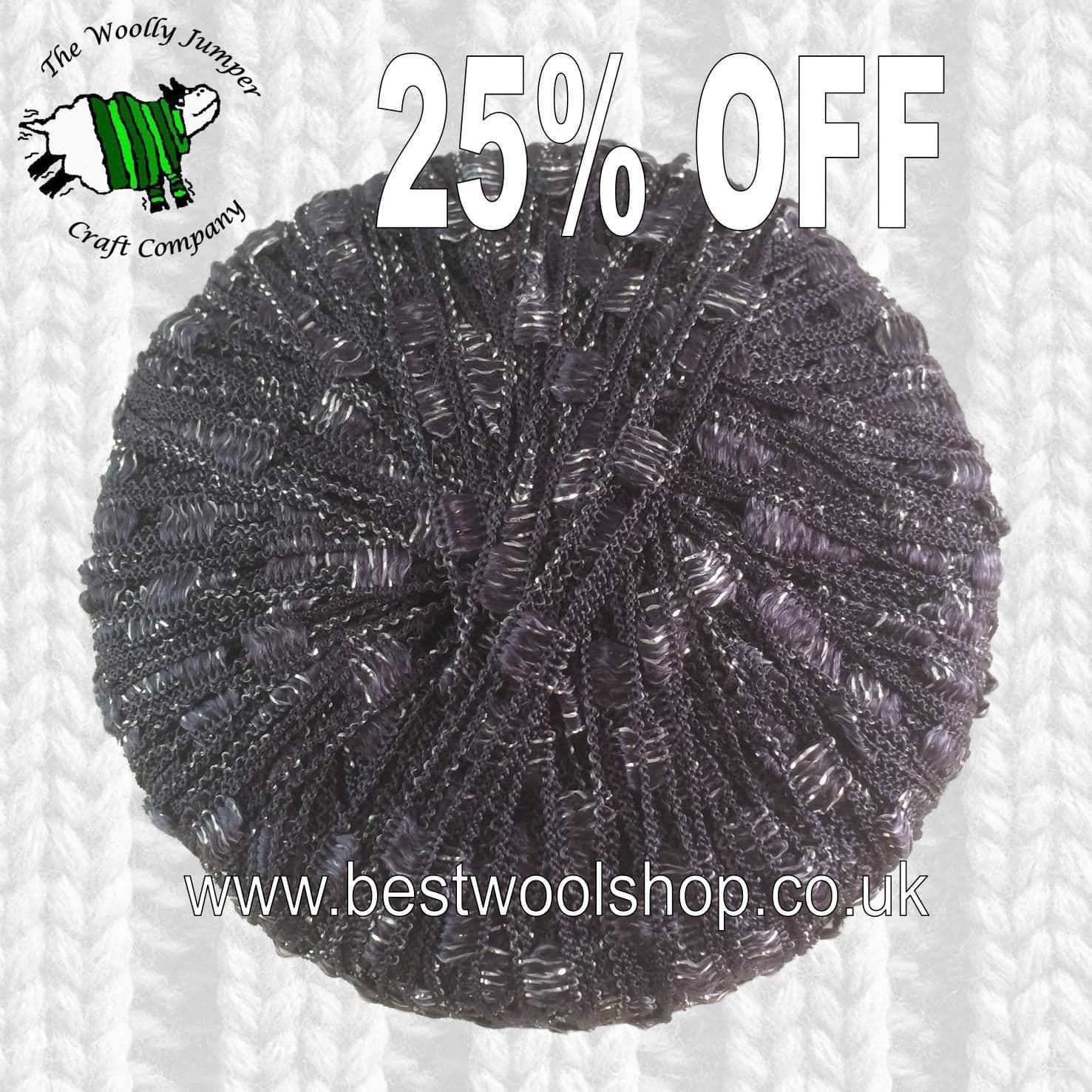 A great value glitter ladder yarn from V & A Products. Elegance, sophistication, glamour. This delicate 'ladder' construction gives your knitting a superb drape & handle.